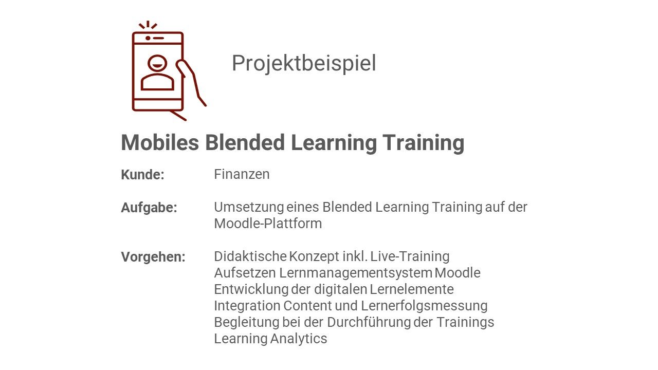 Wir beraten Sie bei der Auswahl passender Lernmanagement-Systeme (LMS) und deren Implementierung und unterstützen bei der didaktischen Aufbereitung und Umsetzung der Lerninhalte in verschiedenen Formaten.